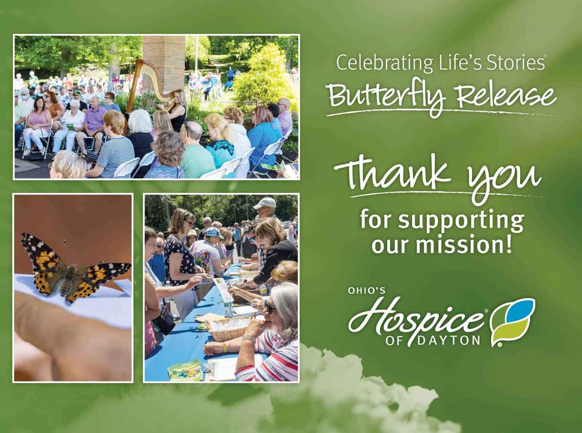 “Butterflies symbolize beauty, transformation and hope. Like the butterfly, life starts transforming at birth,” said Lori Poelking-Igel, president of Ohio’s Hospice Foundation. “Life is compiled of moments that we use to create memories. These memories are what keep relationships alive, even beyond death.”