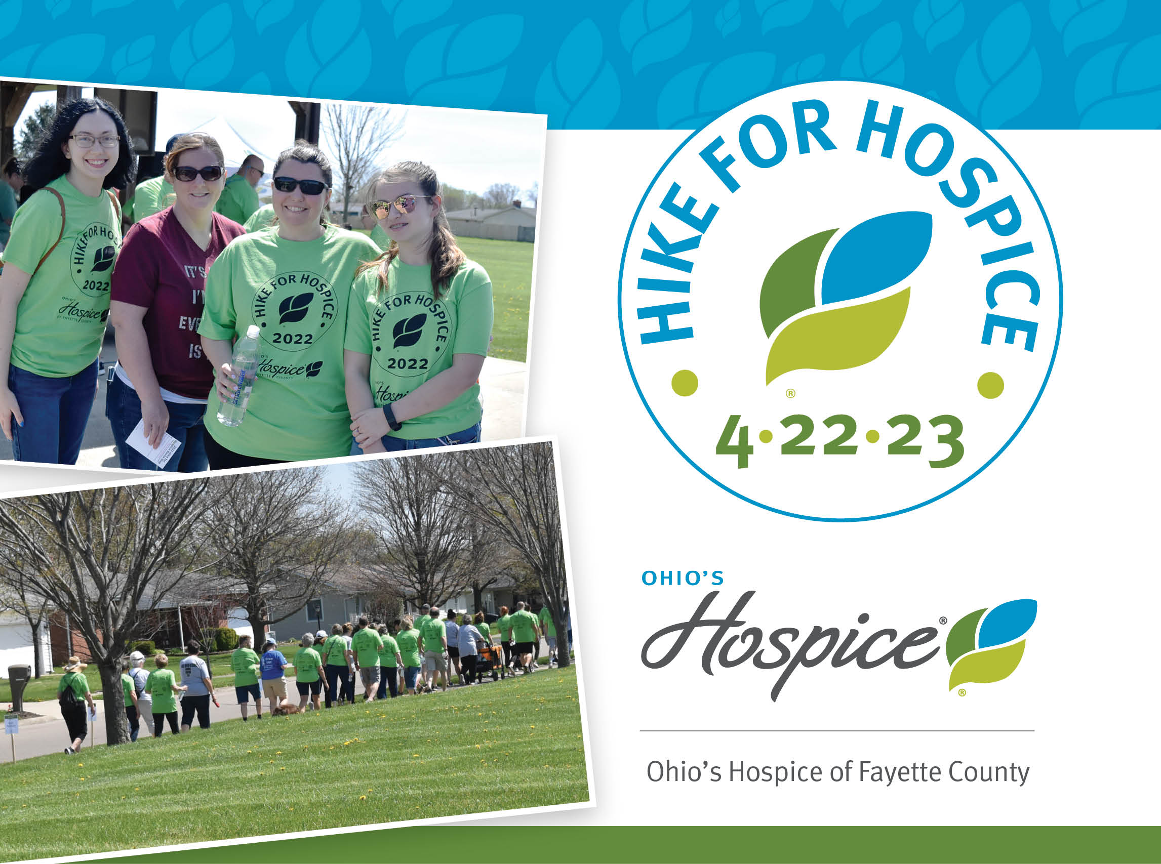 Ohio’s Hospice of Fayette County is inviting the community to participate in its 2023 Hike for Hospice event on Saturday, April 22, 2023, 9 am-1 pm, at Grace Community Church (525 Glenn Ave., Washington Court House, Ohio 43160).