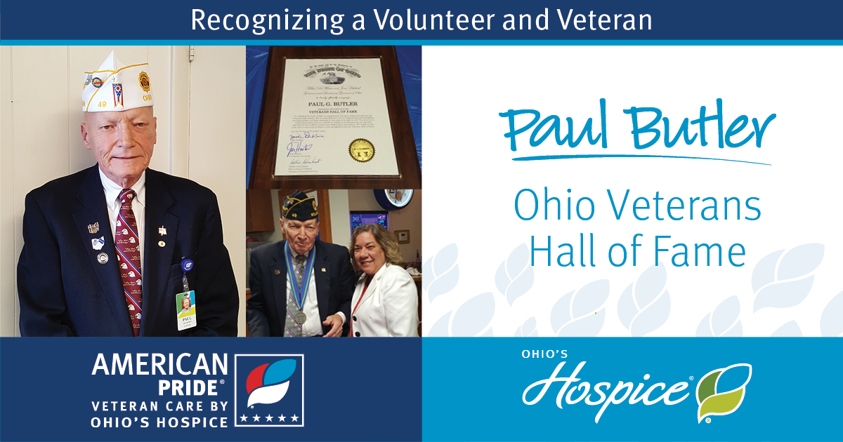 Paul Butler, an American Pride® Veteran Care by Ohio’s Hospice volunteer since 2015, has been nominated and inducted into the Ohio Veterans Hall of Fame.