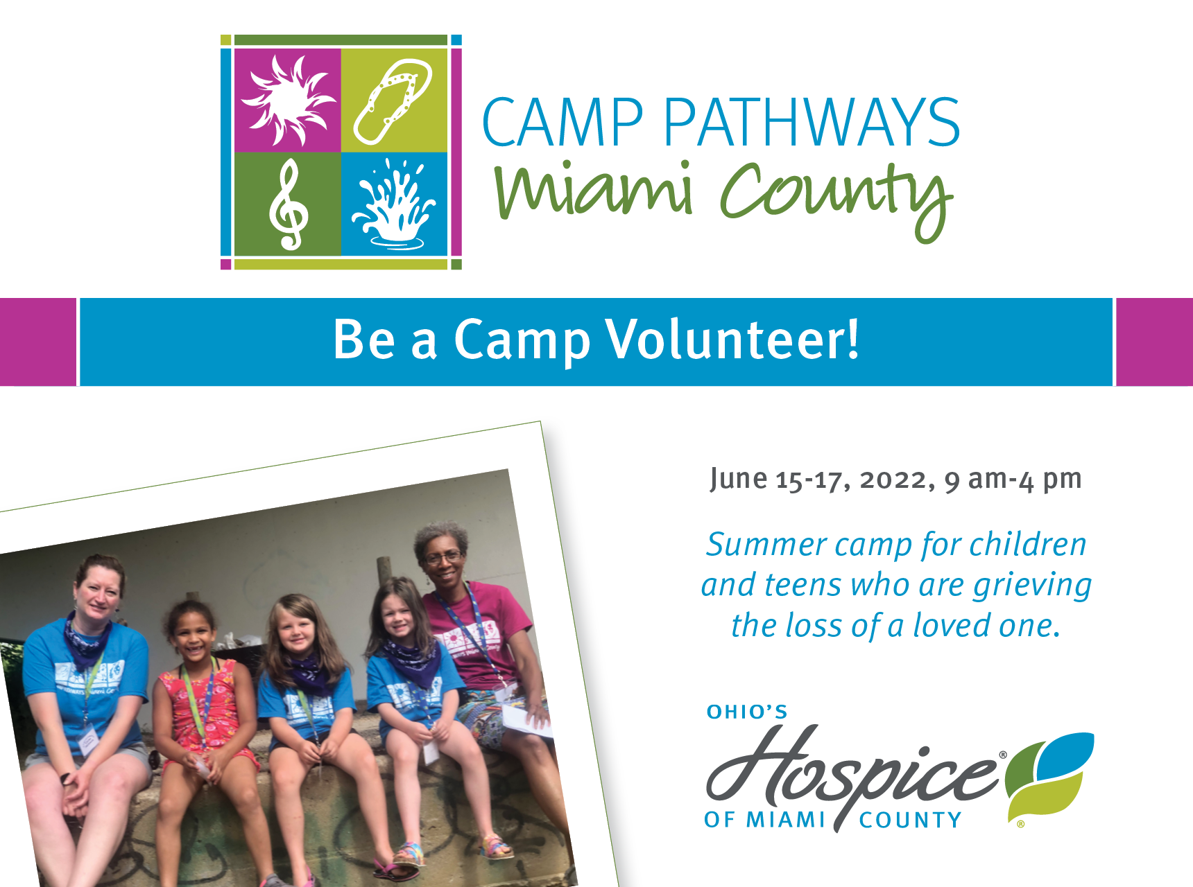 For more information, call 937.573.2114. To apply to become a volunteer for Camp Pathways, please visit: www.HospiceofMiamiCounty.org/Camp2022