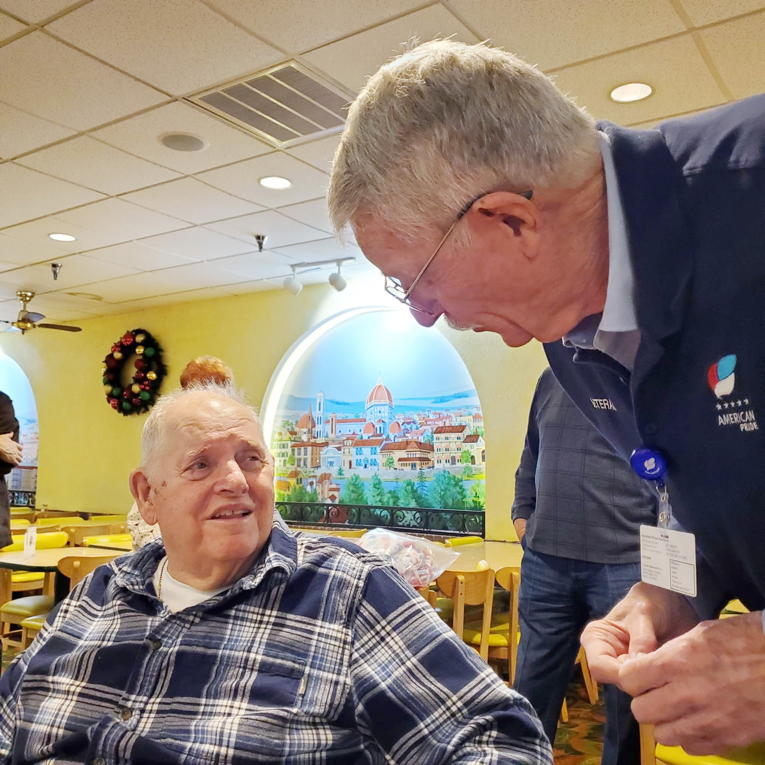 As part of the American Pride® Veteran Care by Ohio’s Hospice program, every Veteran is invited to participate in an honor ceremony. Veterans receive a special pin that has the words “American Pride.” Pinning’s are conducted by a Veteran volunteer. Upon completion of the pinning, Veteran volunteers salute the Veteran and thank them for their service.