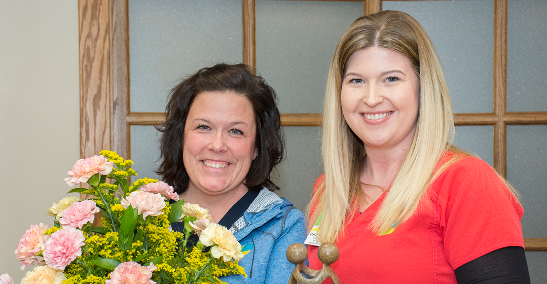 Pictured above, Jamie left with Brittney Thiel, Hospice House Team Leader, right