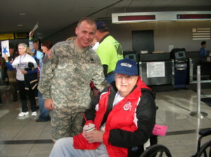 Bud served as a staff car driver while in the Army and became a mechanic after he was discharged. Bud was one of three Hospice of Dayton patients who boarded a plane in 2009 to revisit their past through Honor Fight, a program designed to transport veterans to Washington, D.C. to visit and reflect at the memorials dedicated to honor their service and sacrifice. It was his first trip to D.C. and the monuments that pay tribute to he and other soldiers that served in World War II, and a cherished memory.