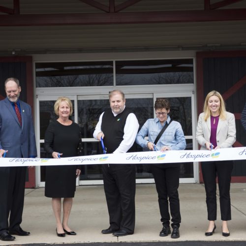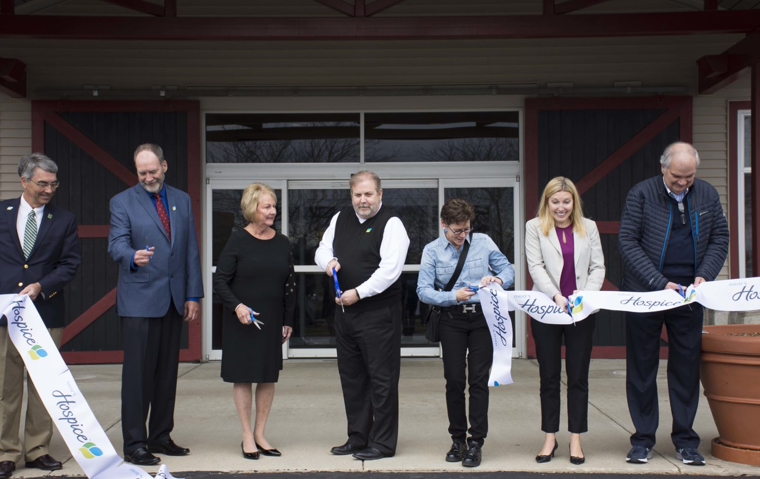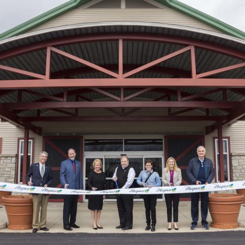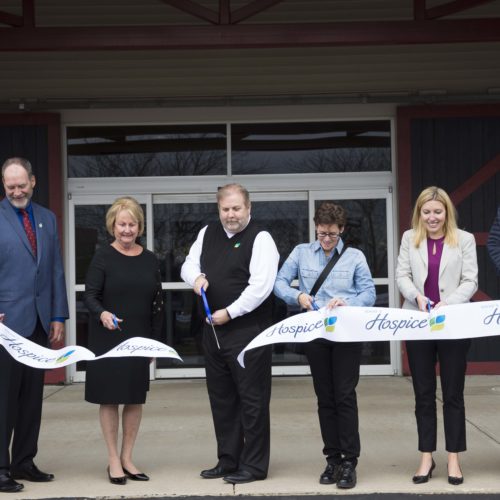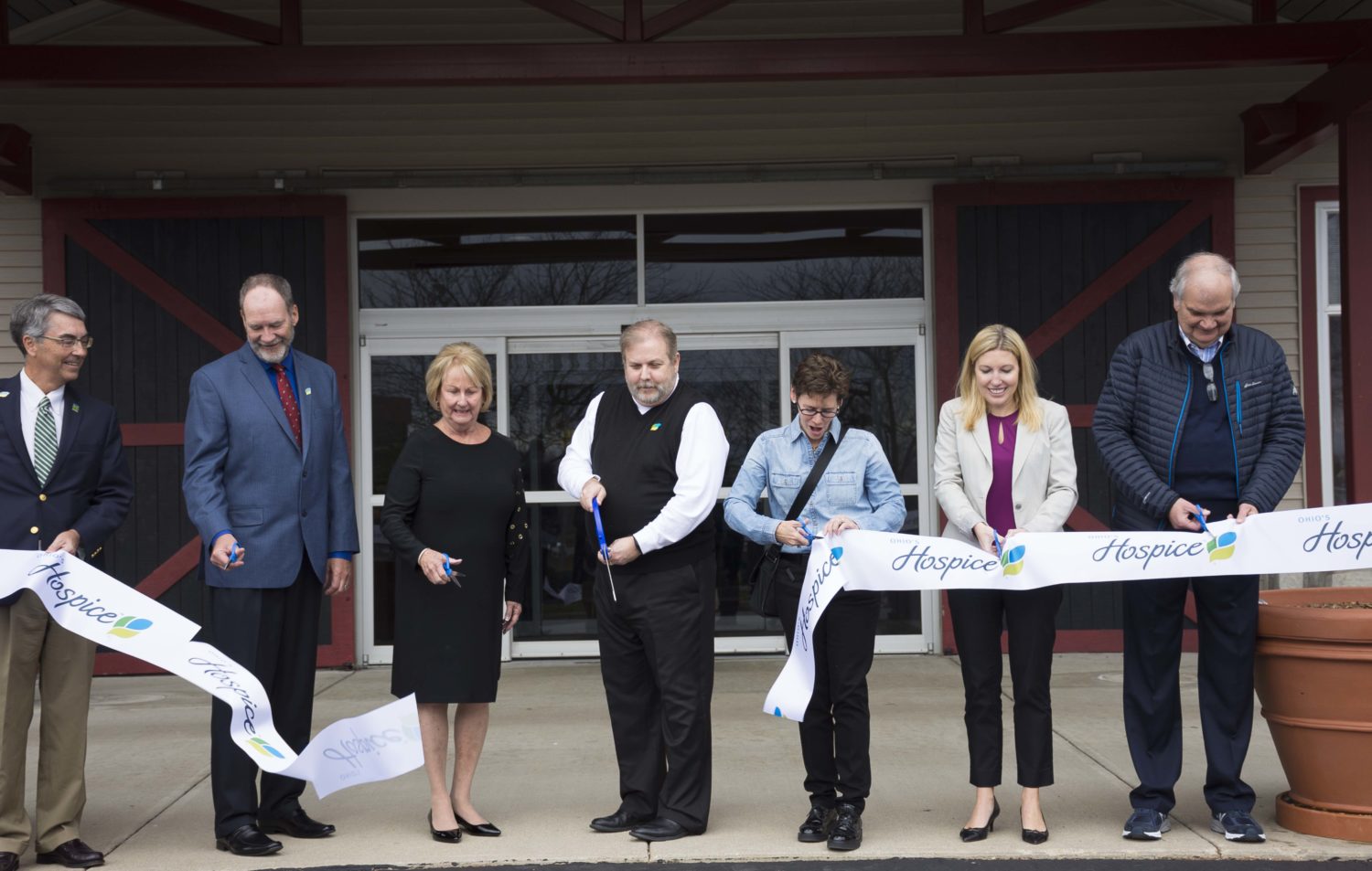 Among those in attendance at the Open House event were local dignitaries, community and board members. Pictured above participating in ribbon-cutting ceremonies are (l to r) Ohio’s Hospice Board Members Tom Mann and Greg Toman, Washington Township Board of Trustee Member Sharon Lowry, Ohio’s Hospice President/CEO Kent Anderson, Ohio’s Hospice Board Member Lisa Hanauer, Washington Township Administrator Jesse Lightle and Ohio’s Hospice of Dayton Foundation Board Member Jerry Tatar.