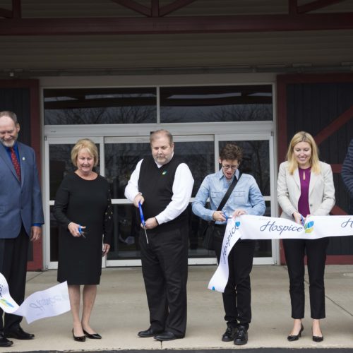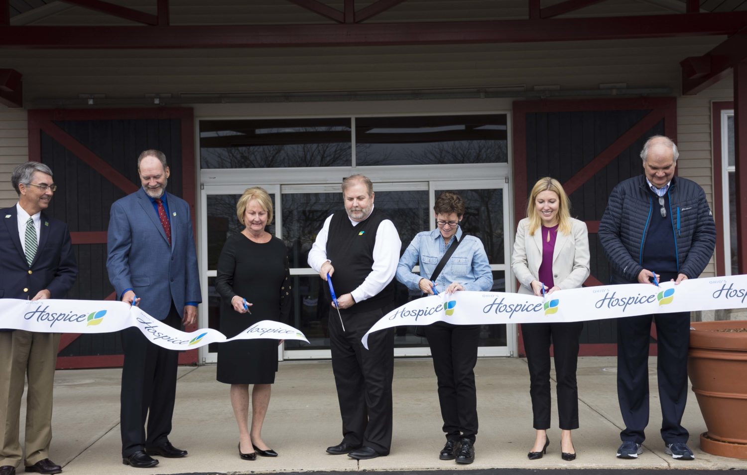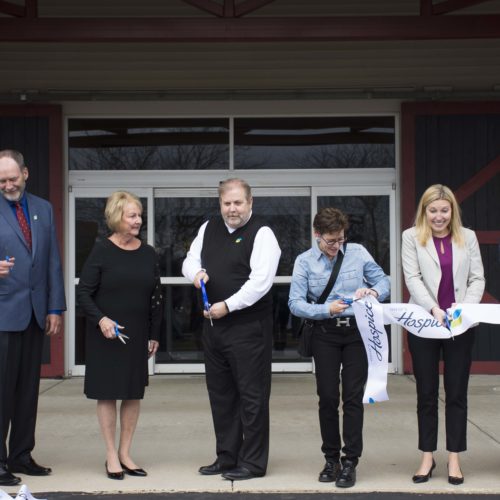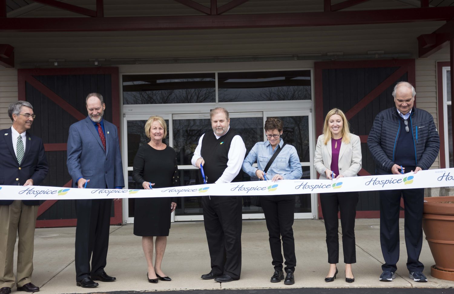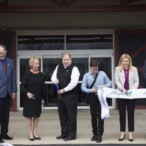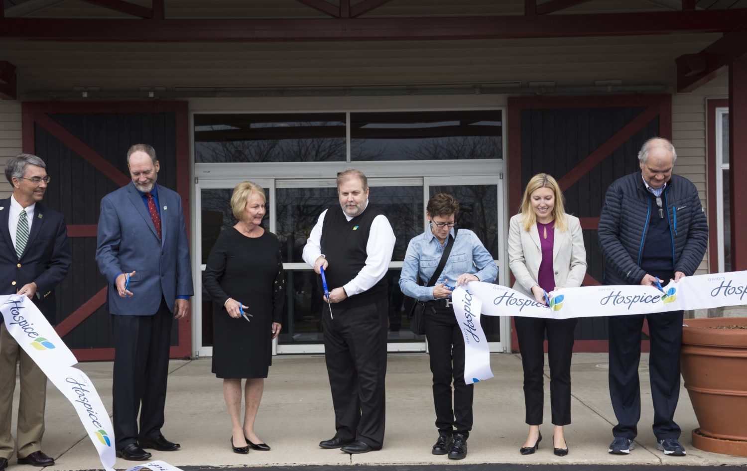 Among those in attendance at the Open House event were local dignitaries, community and board members. Pictured above participating in ribbon-cutting ceremonies are (l to r) Ohio’s Hospice Board Members Tom Mann and Greg Toman, Washington Township Board of Trustee Member Sharon Lowry, Ohio’s Hospice President/CEO Kent Anderson, Ohio’s Hospice Board Member Lisa Hanauer, Washington Township Administrator Jesse Lightle and Ohio’s Hospice of Dayton Foundation Board Member Jerry Tatar.