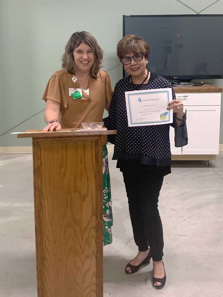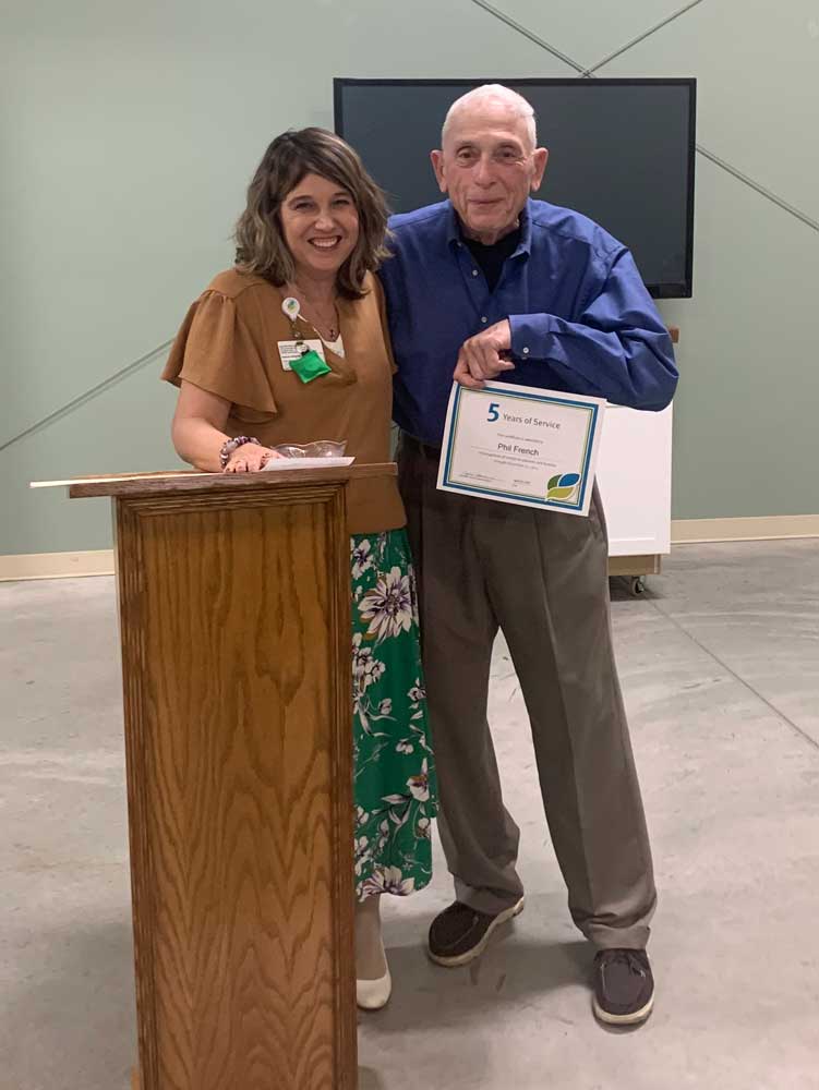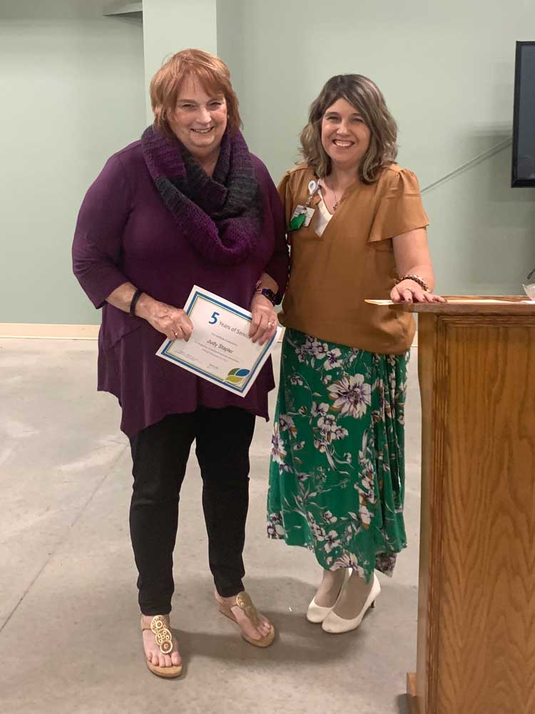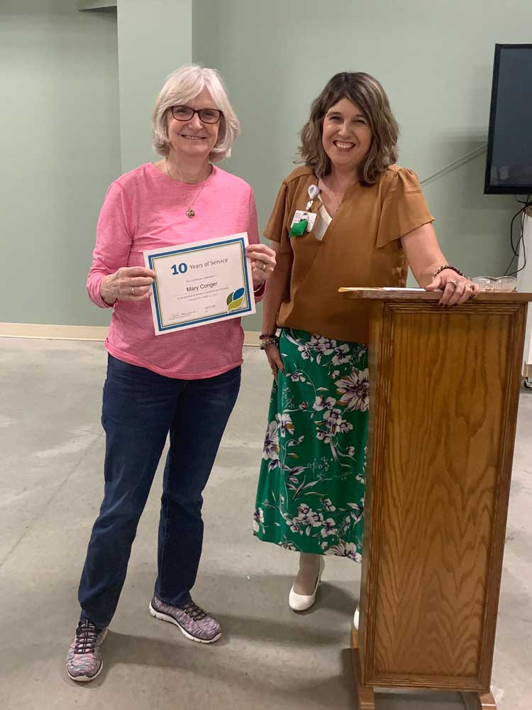 At the volunteer appreciation event, Mary Conger was recognized for 10 years of service. Phil French, Emma Thompson and Judy Stapler were recognized for five years of service. Mary Lou Schluep was recognized for four years of service, and Jimmy Oberlin was recognized for one year of service.