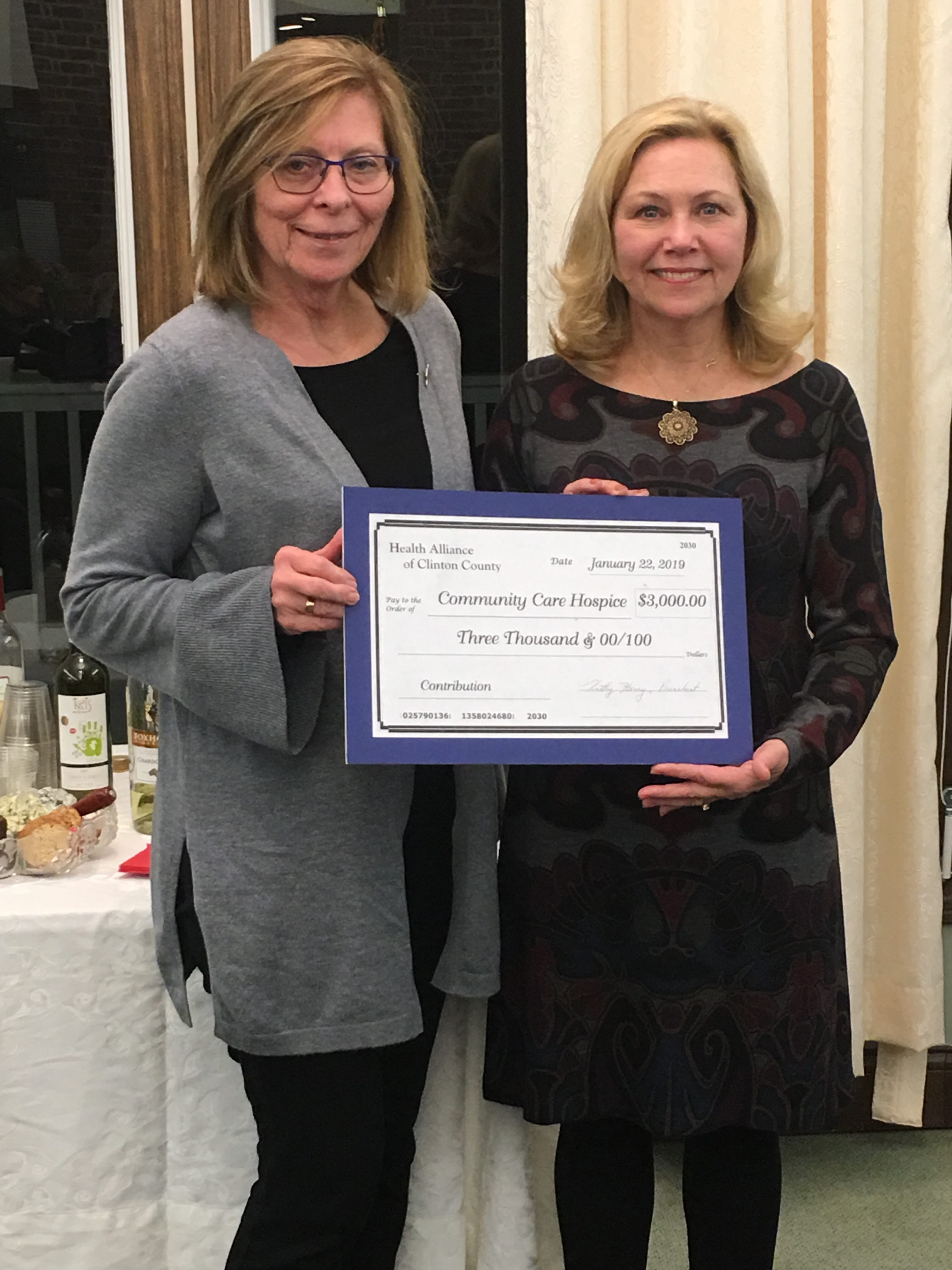 Community Care Hospice received donations of $3,000 from Health Alliance of Clinton County and $200…