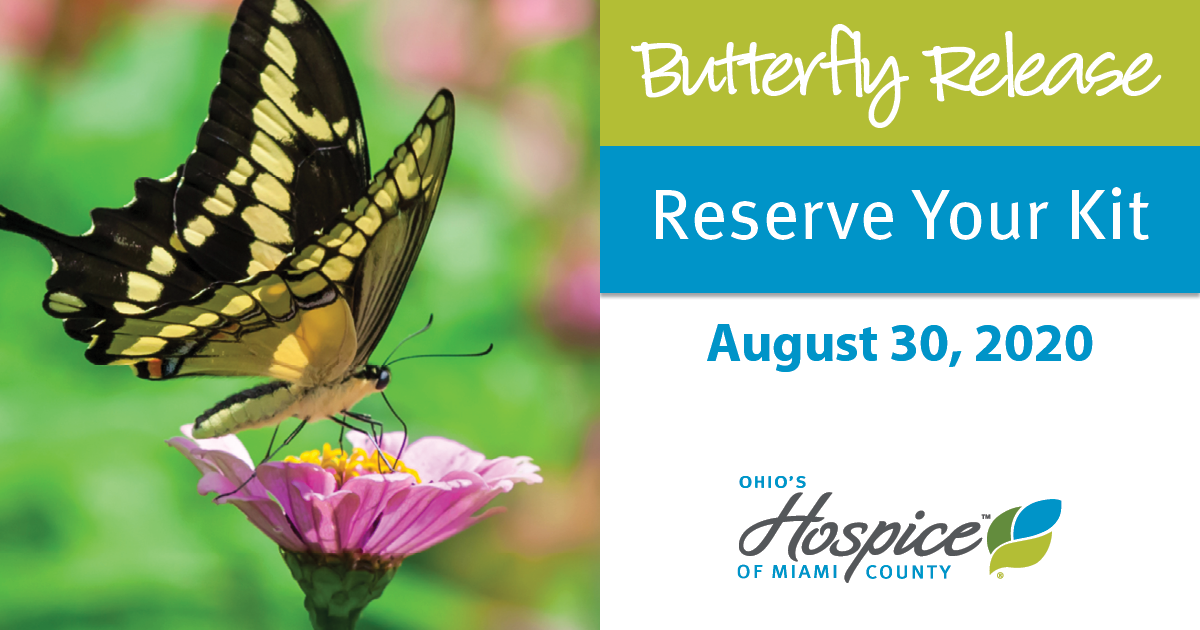 Ohio’s Hospice of Miami County will hold its first ever do-it-yourself memorial butterfly release event. Because of the COVID-19 pandemic, this year’s event will be a bit different from past years. On Sunday, Aug. 30, registered guests can pick up their butterfly release kit in the parking lot of its office (550 Summit Ave., Troy, OH 45373).