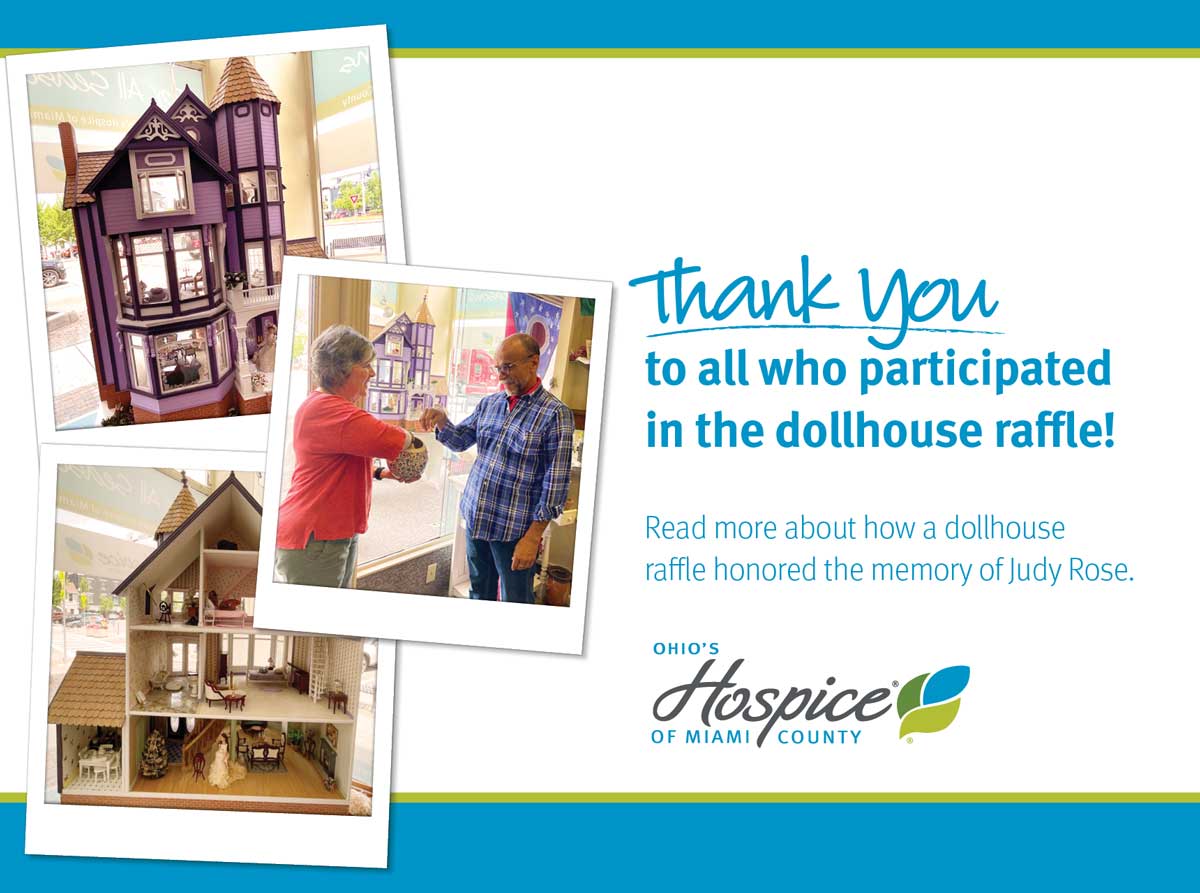 Pelayo is grateful that Rose’s dollhouse has found a new home. “We hope you enjoy the dollhouse as much as Judy did,” he said. “Thank you to everyone who participated in the raffle to benefit Ohio’s Hospice of Miami County.”