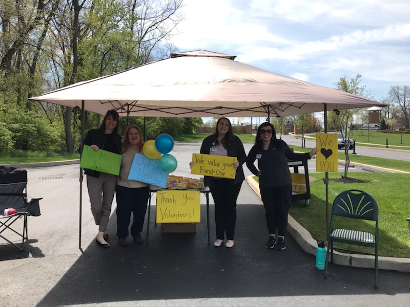 More than 60 volunteers drove up to the parking lot at Ohio’s Hospice of Dayton to receive a token of appreciation, which included a sweet treat and a bag of potato chips labeled “You’re all that and a bag of chips!”