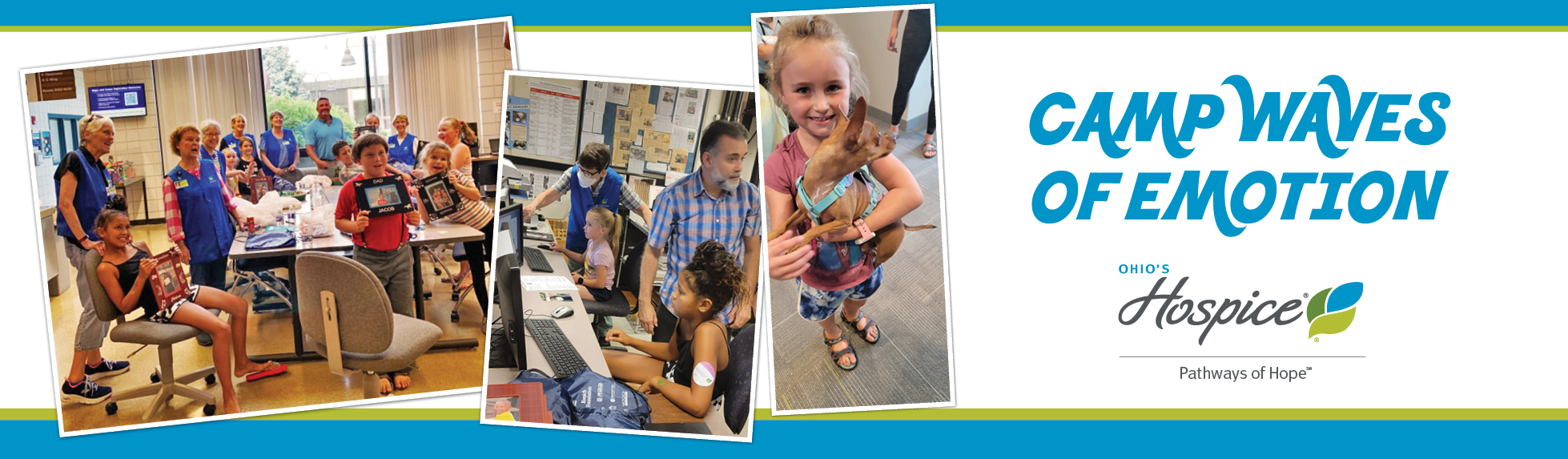 Camp Waves of Emotion is a four-day grief camp for children, ages 7-12, who have lost a parent, sibling or significant loved one. During the camp, a bereavement counseling professional and trained staff will utilize art, music, play, and grief curriculum to assist children in identifying their unspoken feelings and process their grief.