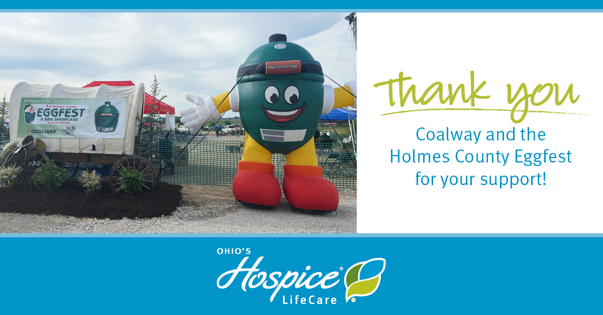 “We greatly appreciate Coalway and the Holmes County Eggfest for their generosity and support of Ohio’s Hospice LifeCare,” said Kurt Holmes, executive director of Ohio’s Hospice LifeCare. “Support from events like this enable us to continue providing superior patient care and services to our community.”