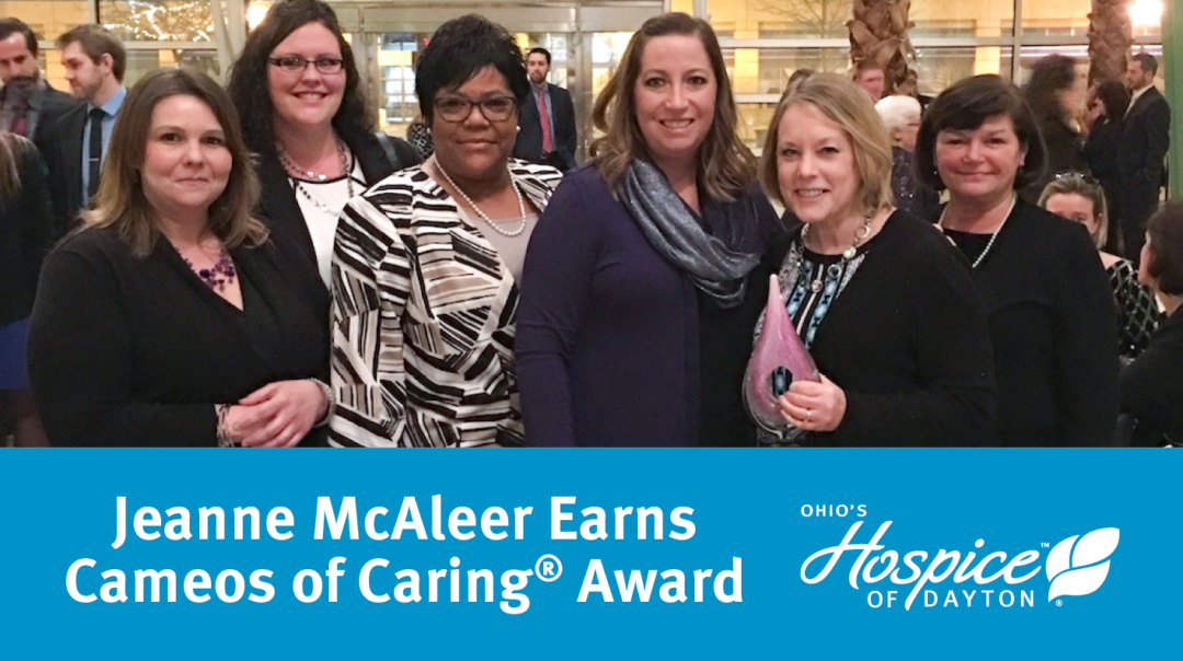 Ohio’s Hospice of Dayton RN Care Manager Jeanne McAleer was among the outstanding nurses recently honored at the Wright State University Miami Valley College School of Nursing Cameos of Caring® Awards.