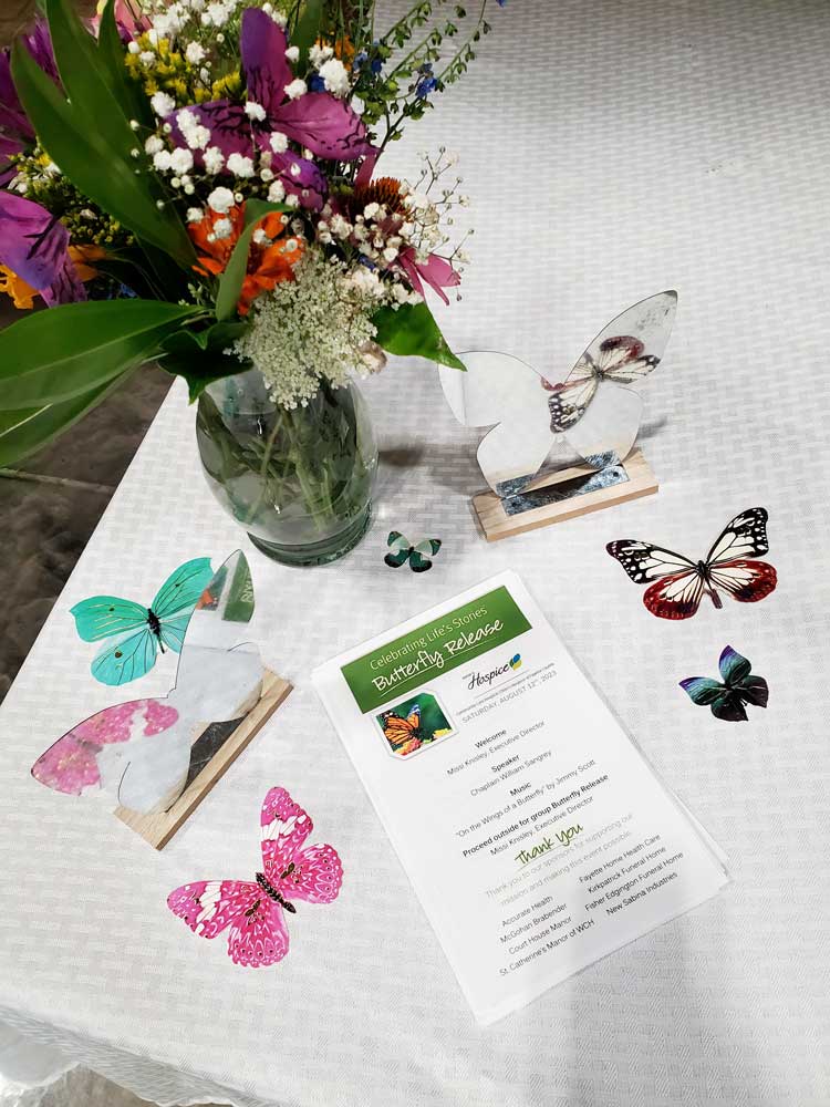 More than 60 members of the community released 110 butterflies in honor of loved ones at the Community Care Hospice and Ohio’s Hospice of Fayette County Celebrating Life’s Stories® Butterfly Release on Aug. 12, 2023, at the Sabina Church of Christ in Sabina, Ohio.