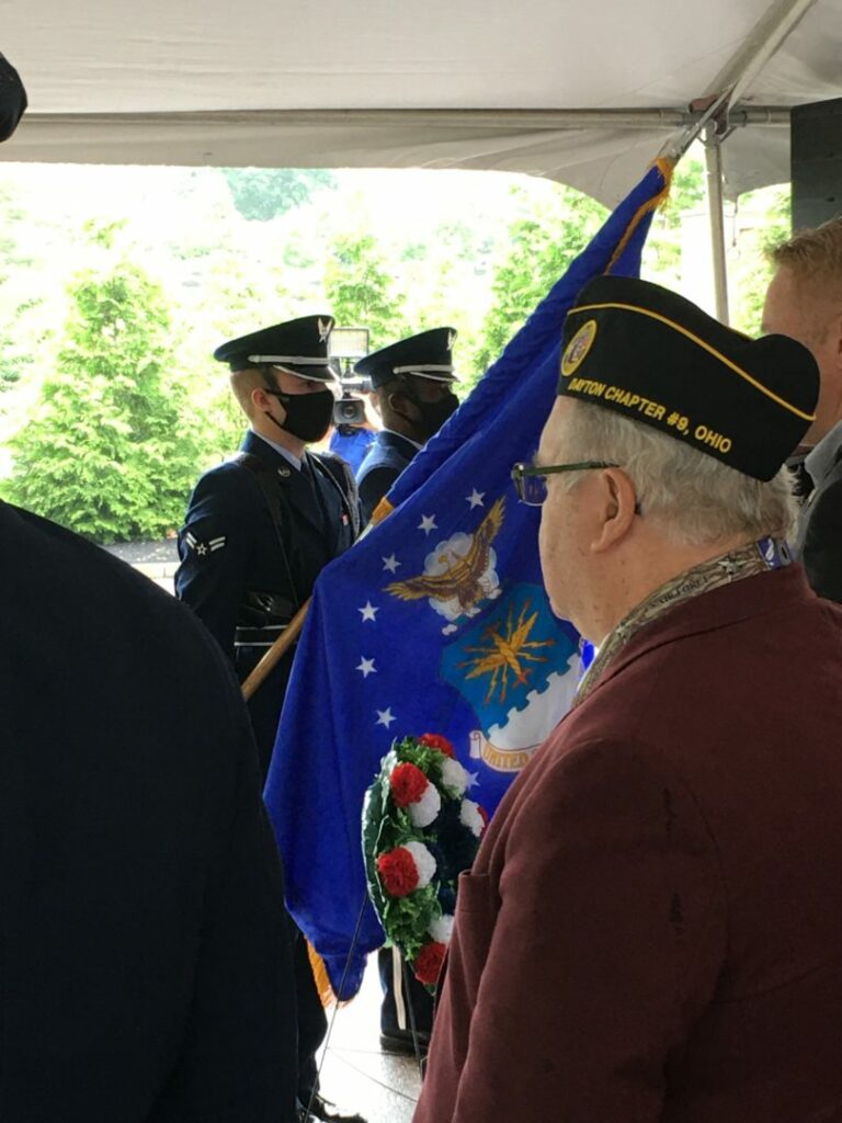 U.S. Rep. Warren Davidson, who represents Ohio’s 8th Congressional District, was the featured speaker at the event, which also included the laying of the wreath, a ritual that pays tribute and honor to those who have died while serving the nation. In addition, the Wright-Patterson Air Force Base Honor Guard performed the Posting the Colors and the Retiring the Colors.