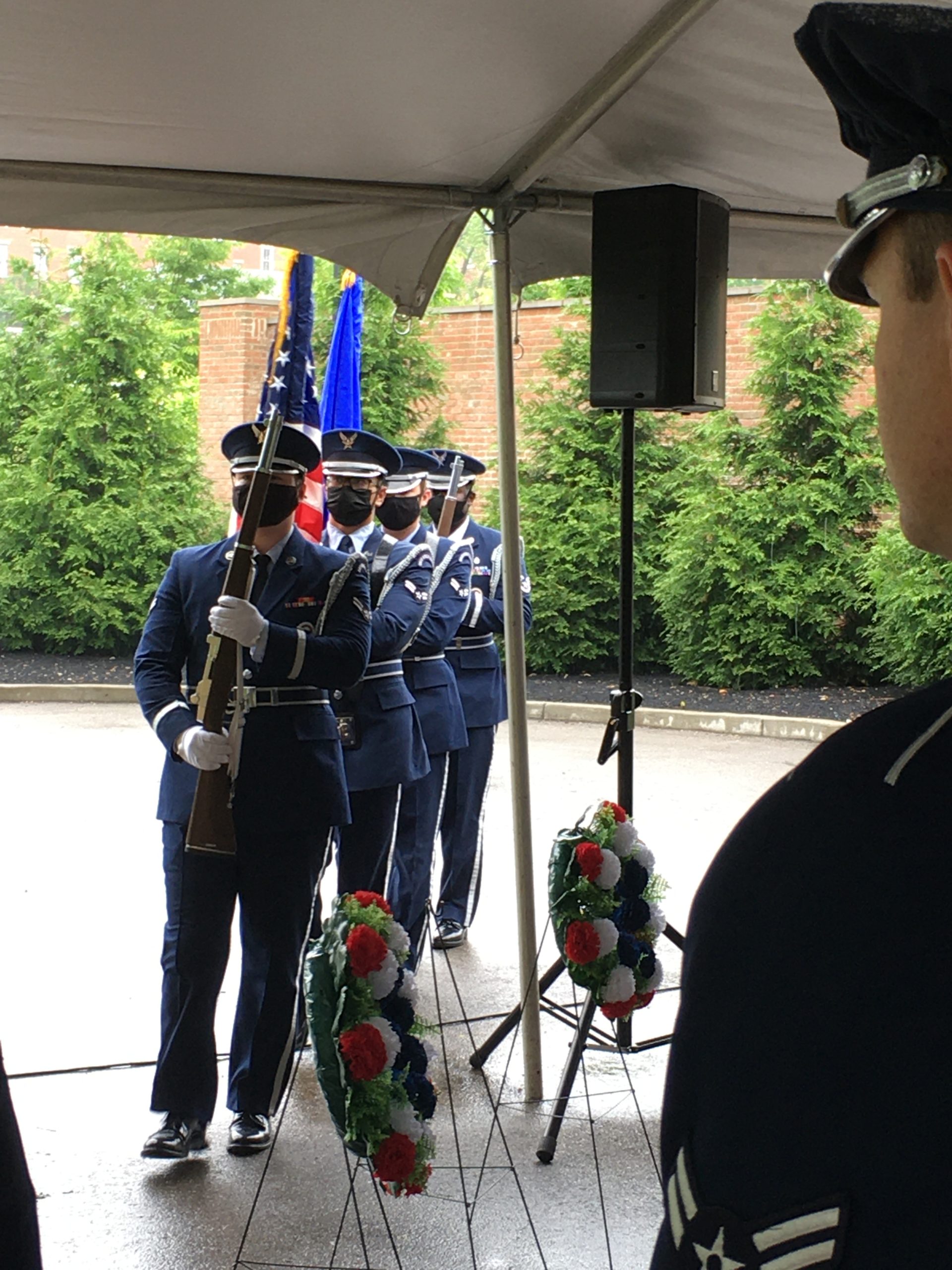 U.S. Rep. Warren Davidson, who represents Ohio’s 8th Congressional District, was the featured speaker at the event, which also included the laying of the wreath, a ritual that pays tribute and honor to those who have died while serving the nation. In addition, the Wright-Patterson Air Force Base Honor Guard performed the Posting the Colors and the Retiring the Colors.
