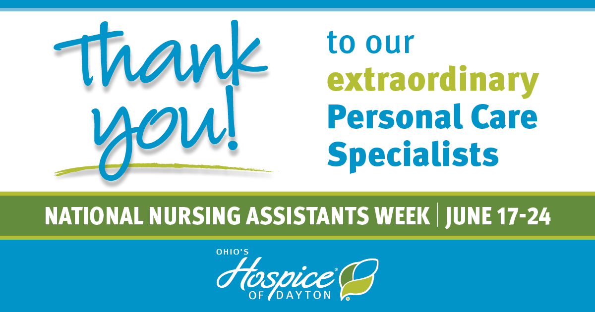 During National Nursing Assistants Week, June 17-24, Ohio’s Hospice of Dayton, an affiliate of Ohio’s Hospice, takes a moment to recognize and thank our personal care specialists for all they do 24 hours a day, 7 days a week, 365 days a year to provide superior care to our patients and families we are privileged to serve.