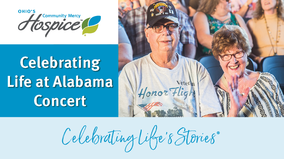 When Ohio’s Community Mercy hospice patient and music lover Arthur Meharg heard that the band Alabama was performing in the area, he really wanted to go. After all, he had a “history” with the band stretching back decades. He had seen three concerts back in the heyday of their success in the early 1980’s while he was living in California. “They only had five members of the band then, and I loved their music,” Arthur recalls. “I’ve also been to visit the Alabama Fan Club and Museum twice.”