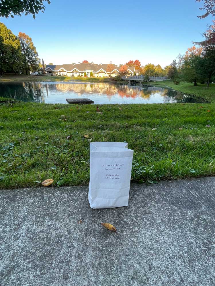 At Ohio’s Hospice Wooster’s second Pathways of Hope℠ Luminaria, as dusk settled over the wooded grounds, luminarias bearing the names of those who recently died created a gentle glow around the pond behind the Gault Inpatient Pavilion.