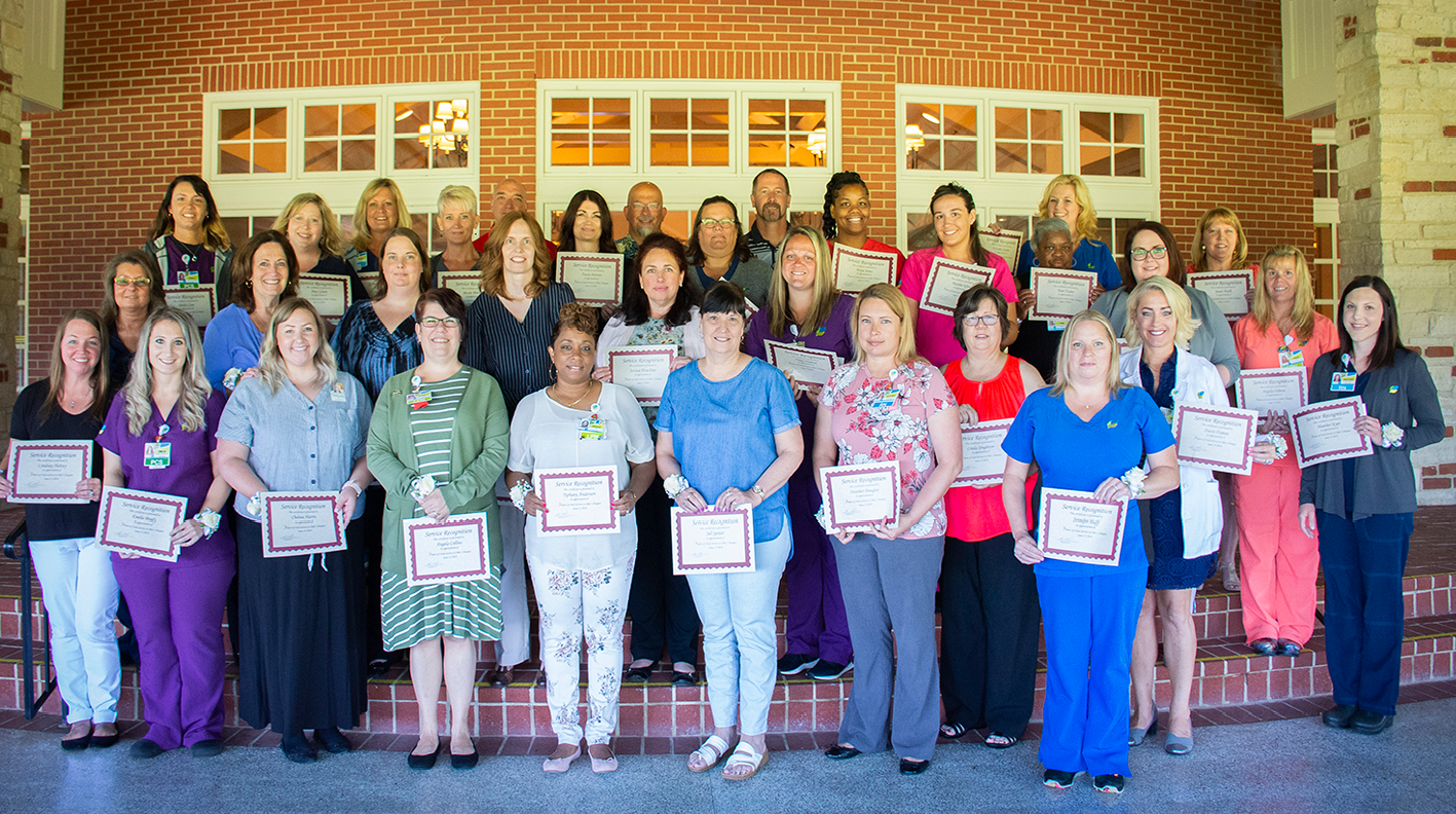 Staff members from Ohio’s Community Mercy Hospice celebrating significant milestones of service include: