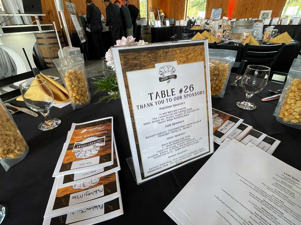 Thank you to the committee for their work on this event, the generous sponsors, and chefs, and Rustic Ridge Wedding Barn for serving as the beautiful location. Culinary Capers will return in the spring of 2025.