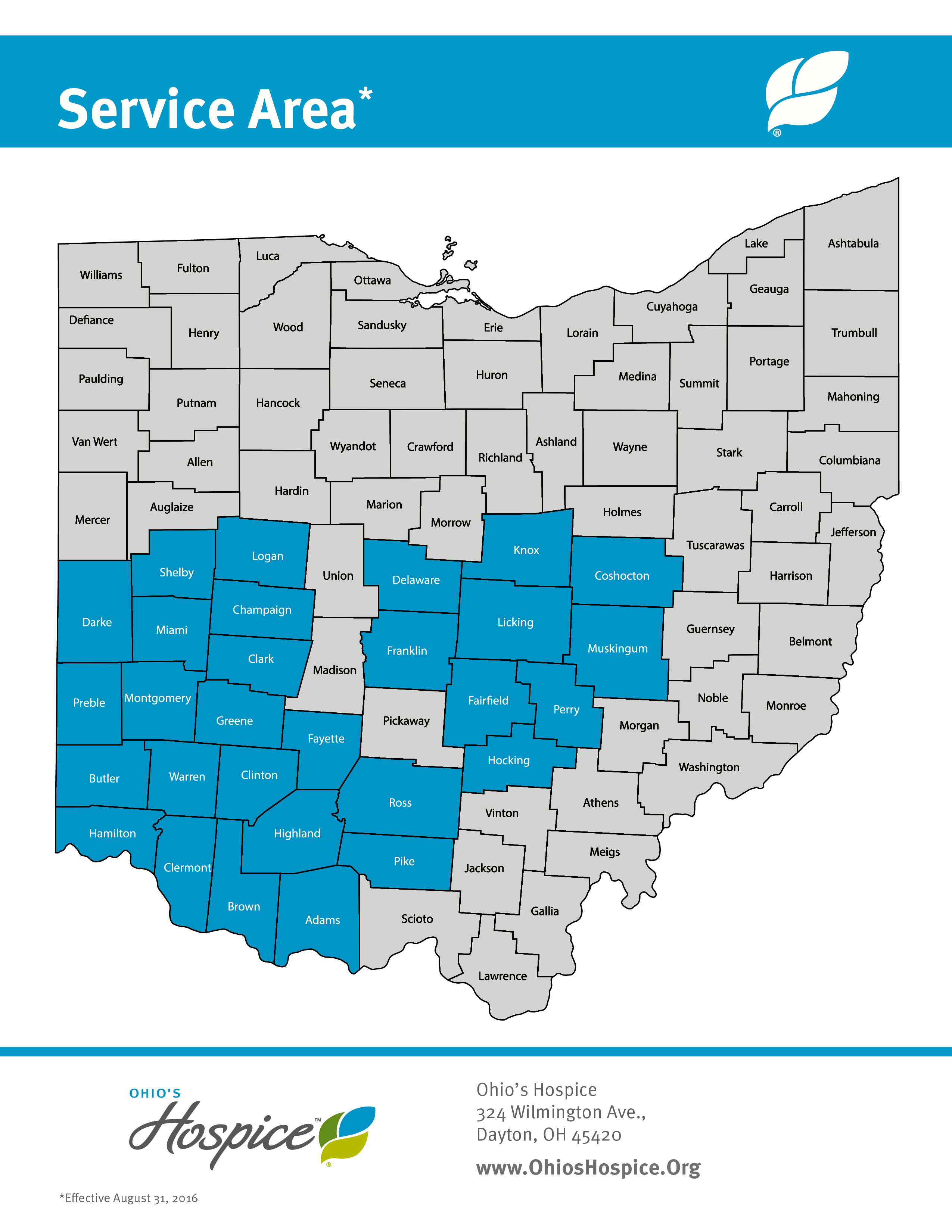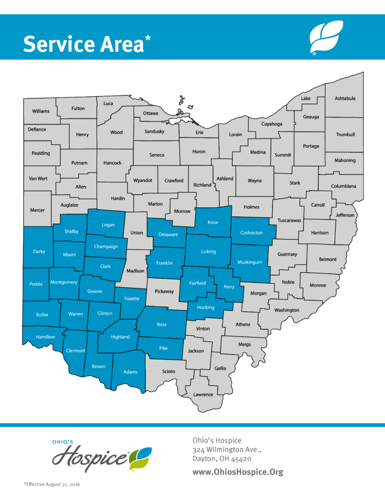 Ohio’s Hospice was established in 2013 as a collaboration of Hospice of Dayton, Hospice of Butler & Warren Counties and Hospice of Miami County to ensure the long-term success of the shared mission of serving more patients and their families with even higher levels of hospice care. Hospice of Central Ohio and Community Care Hospice joined the group in 2015.