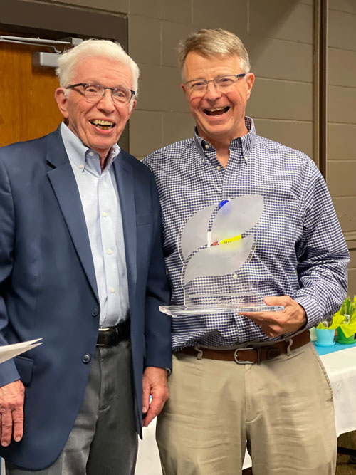 Each year, Ohio’s Hospice LifeCare honors one of its volunteers with its Volunteer of the Year Award — the Kearney Award. It is given to the volunteer who has contributed the greatest number of hours of direct care service. The award is named after Dr. Walter H. Kearney, one of Ohio’s Hospice LifeCare’s founding physicians, former medical director and former board president. Dr. Kearney presented the award to Mark Gustafson who contributed more than 400 hours of his time to support patients and their families.