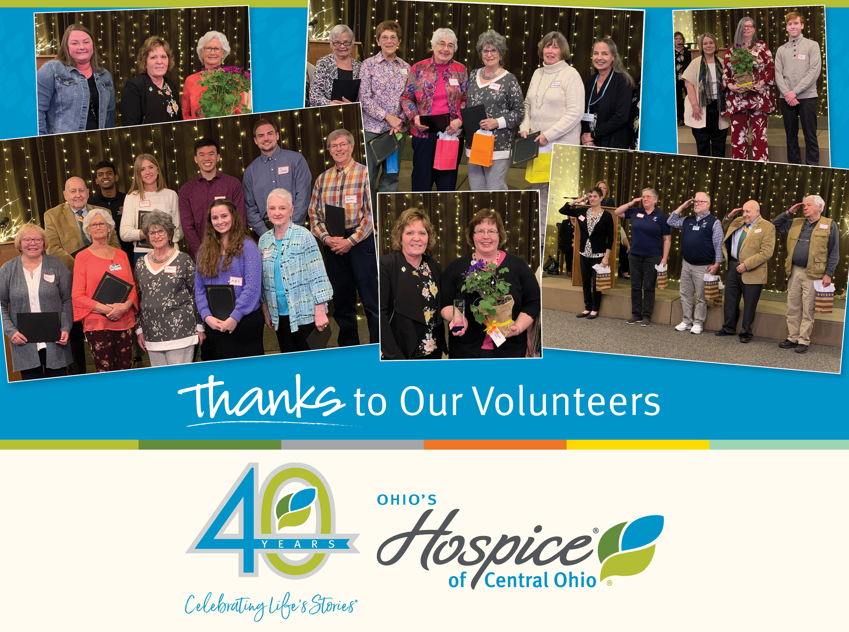 “Volunteers are an essential part of the mission of Ohio’s Hospice of Central Ohio. Our mission is to celebrate the lives of those we have the privilege of serving by providing superior care and superior services to each patient and family,” said Liz Adamshick, manager of Volunteer Services at Ohio’s Hospice of Central Ohio. “We’re grateful for our amazing volunteers. They make a difference in the lives of the patients and families we are honored and privileged to serve.”
