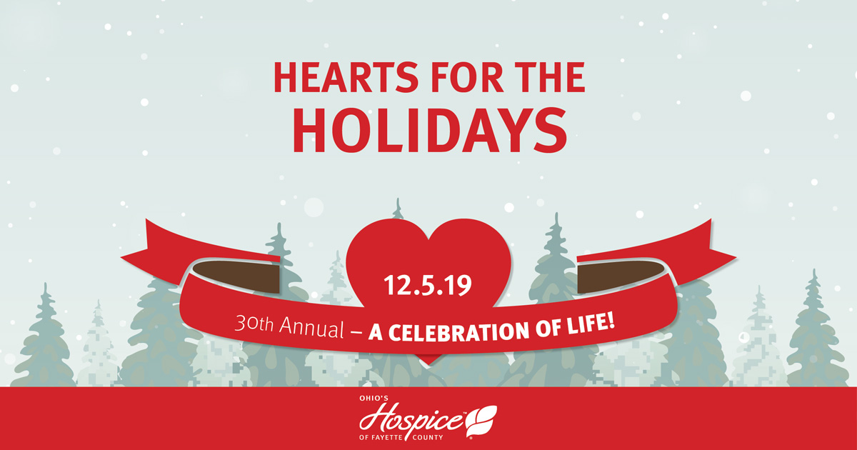 Ohio’s Hospice of Fayette County will host its 30th Annual Hearts for the Holidays, a celebration of life, on Thursday, Dec. 5, at 6:30 pm, at Crossroads Church (175 Halliday Way, Washington Court House, OH 43160).