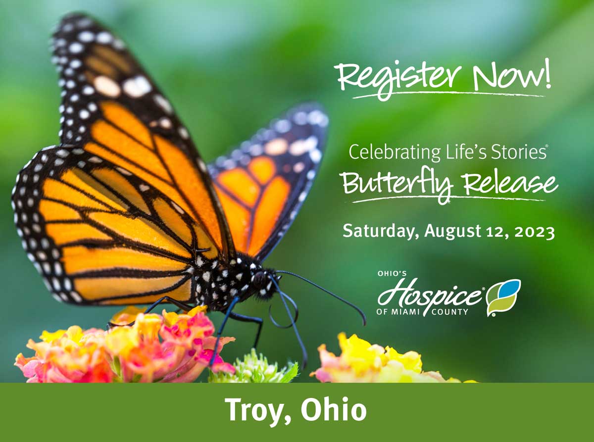 Ohio’s Hospice of Miami County invites the community to its Celebrating Life’s Stories® Butterfly Release to remember and honor loved ones on Saturday, Aug. 12, 2023, at 1:30 pm, at Ohio’s Hospice of Miami County (3230 N. County Rd. 25A, Troy, OH 45373). Registration will begin at 1 pm.