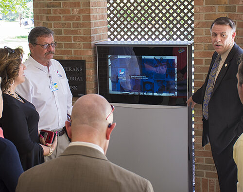 Representatives of Governor John Kasich’s office recently visited the American Pride Veteran Memorial at Ohio’s Hospice of Dayton. Sandra Brasington, Western Ohio Regional Liaison to Governor Kasich, was joined by Chip Tansill, Director, Ohio Department of Veterans Services and Daniel Semsel, Regional Veteran Workforce Consultant, in a tour of the Memorial and discussion of American Pride services for Veterans at Ohio’s Hospice organizations. This marked the first official visit by state officials to the Memorial.