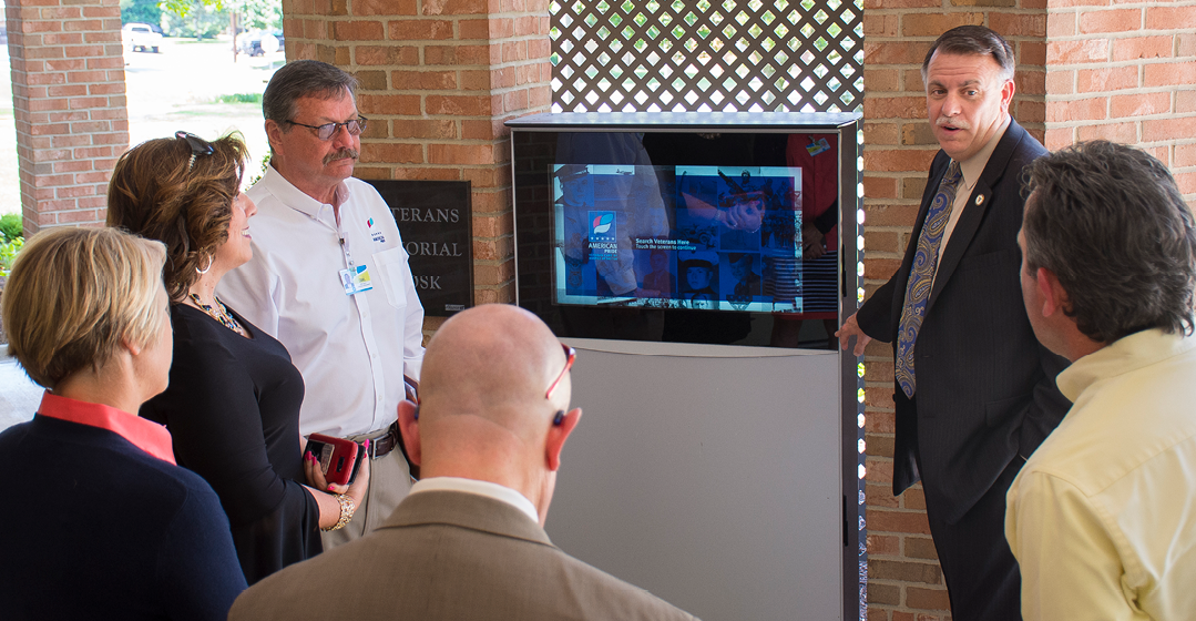 The American Pride Memorial is a moving commemoration that includes illustrated panels dedicated to American military campaigns ranging from the Revolutionary War to the War Against Terror. Each branch of the service is represented with a flag, and the American flag flies proudly at the center of the display. The memorial also includes a computer kiosk that features pictures and stories about veterans.