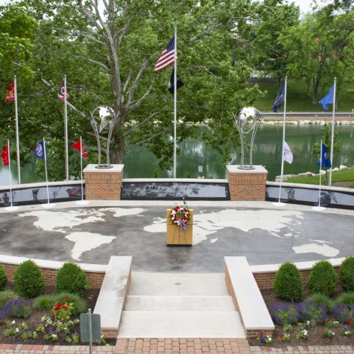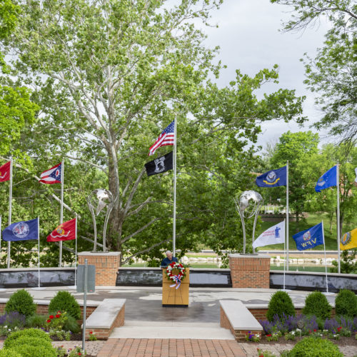 The American Pride Veteran Memorial is a moving commemoration that includes illustrated panels dedicated to American military campaigns ranging from the Revolutionary War to the War Against Terror. Each branch of the service is represented with a flag, and the American flag flies proudly at the center of the display. The memorial also includes a computer kiosk that features pictures and stories about veterans.