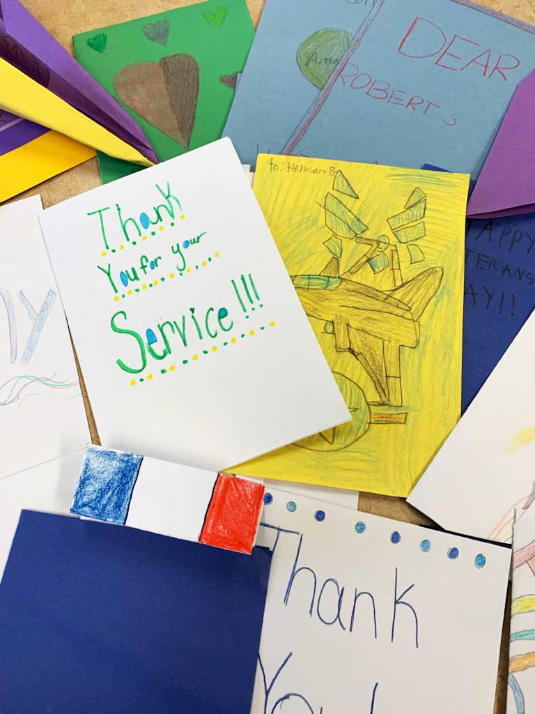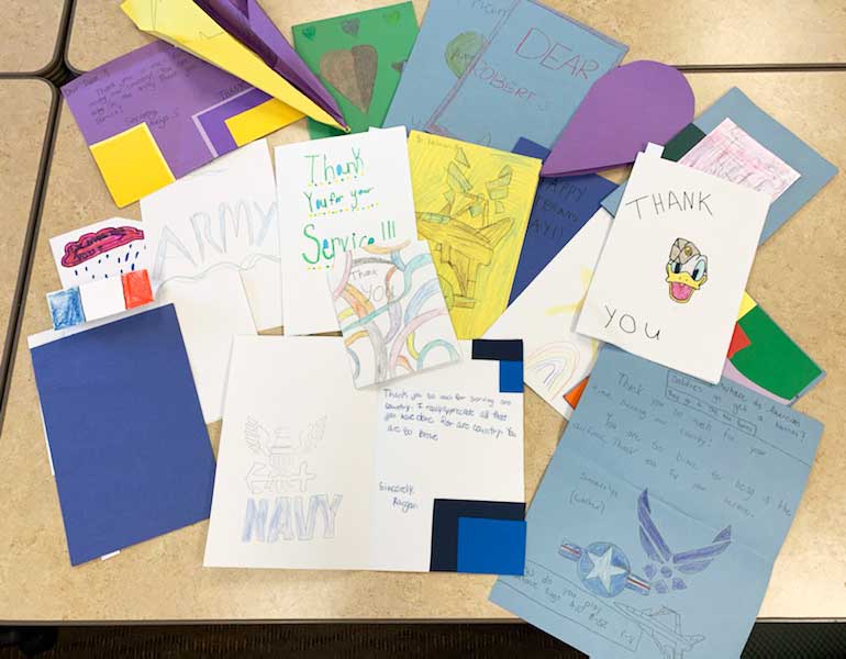 One of our Veteran volunteers honored and recognized Veterans at The Trinity Community at Beavercreek as part of our American Pride® Veteran Care by Ohio’s Hospice program. Two of our volunteer coordinators also helped serve the meal to the Veterans. Sixth graders from Morton Middle School in Vandalia wrote and illustrated thank-you cards for the Veterans.