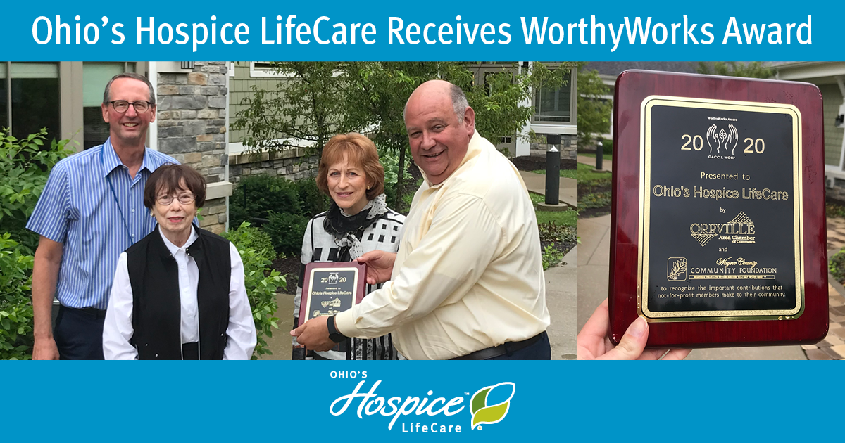 Ohio’s Hospice LifeCare was awarded the WorthyWorks Award by the Wayne County Community Foundation and the Orrville Area Chamber of Commerce.
